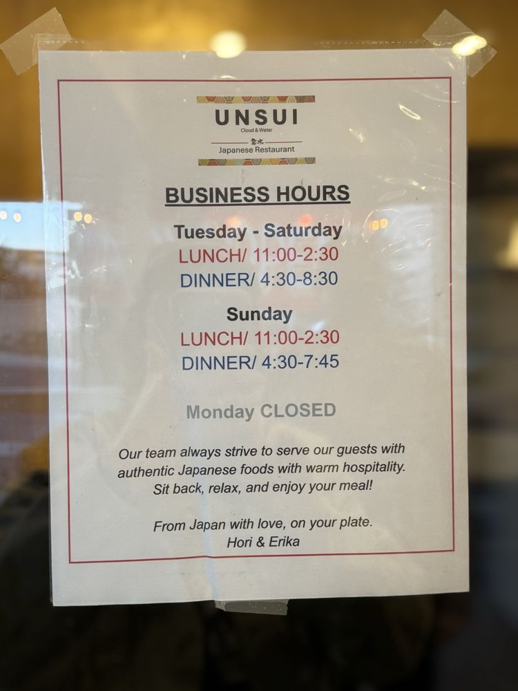 The atmosphere is comfortable and welcoming, while the staff provides attentive service. Whether you choose to dine in or take out, Unsui’s commitment to quality and customer satisfaction ensures a memorable dining experience. Don't miss out on their delightful dishes on your next visit!